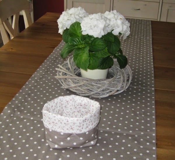 Heute möchte ich Euch mal etwas anderes Kreatives zeigen. Ich hatte im Mai und Juni einen Nähkurs besucht, u.a. sind dieser Tischläufer und ein Utensilio entstanden … ich liebe Pünktchen.
